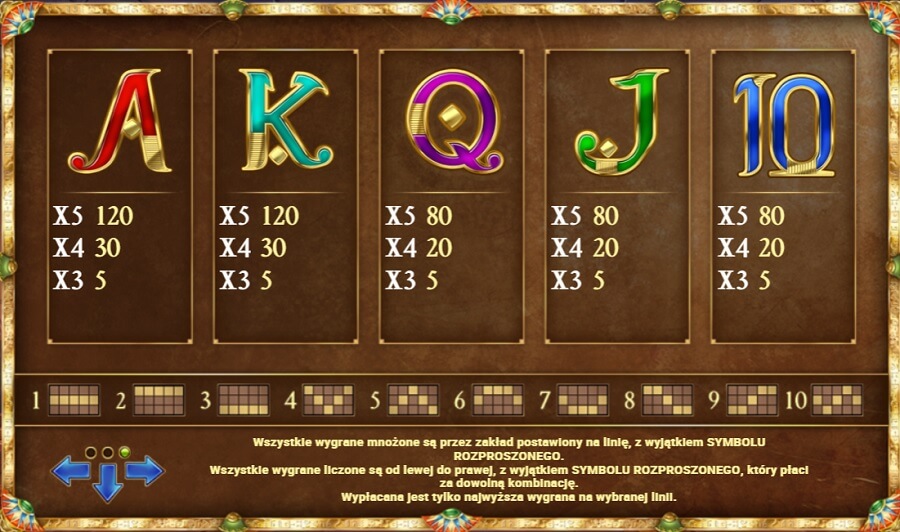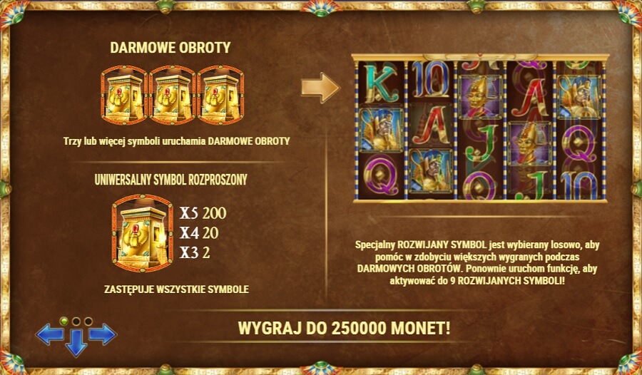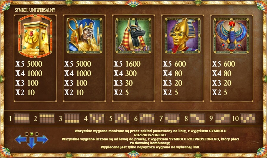 | Tutanchamon, Złota świątynia | 10 | 100 | 1000 | 5000 |